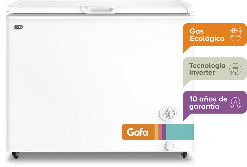 Conservá alimentos, bebidas y envases de todo tamaño, de forma práctica y organizada, con el Freezer Horizontal Gafa FGHI300B-L Blanco con 280L de capacidad.