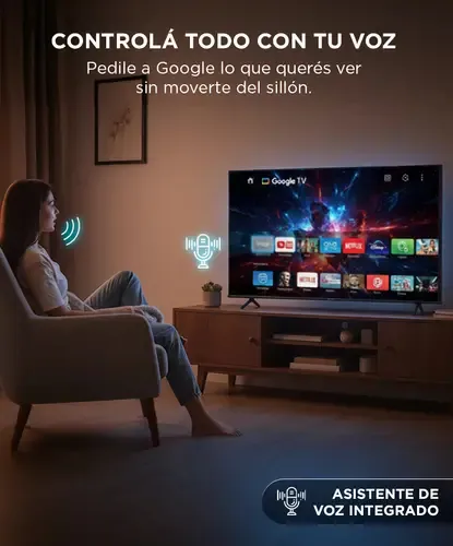 Smart TV LED 65″ 4K UHD con Google TV, Wi-Fi, Bluetooth y control por voz — ideal para streaming y entretenimiento completo.